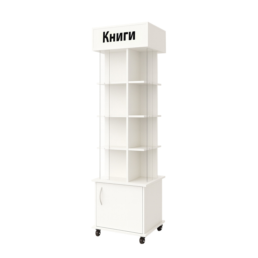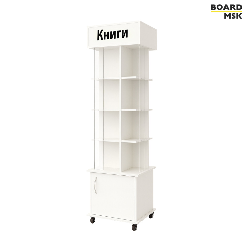 - Стеллаж деревянный напольный цвета "Белый" с отделением под логотип