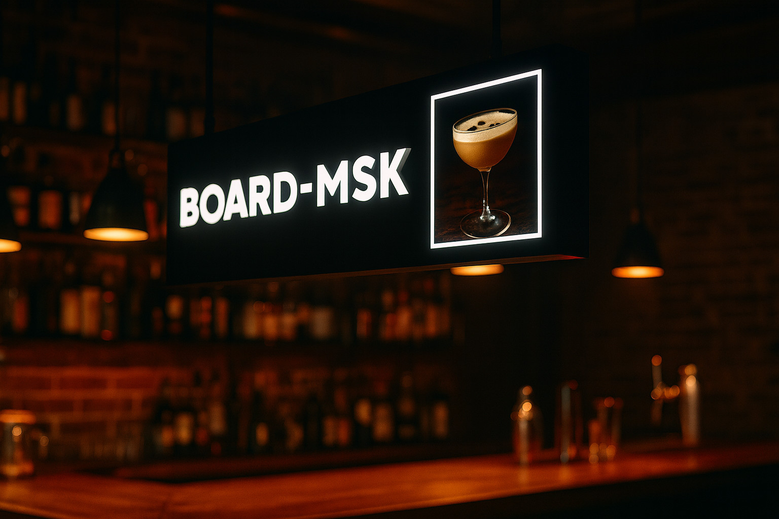 Эффектная комбинированная вывеска для фасадов и интерьеров: объёмные буквы из ПВХ с аккуратной контуражной (контражурной) подсветкой создают выразительный световой контур, а встроенный квадратный дисплей транслирует актуальные сообщения, акции и динамический контент.