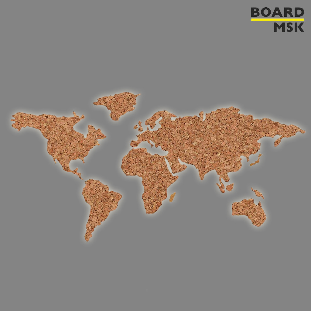 Фигурная пробковая доска "Карта Мира" с подсветкой