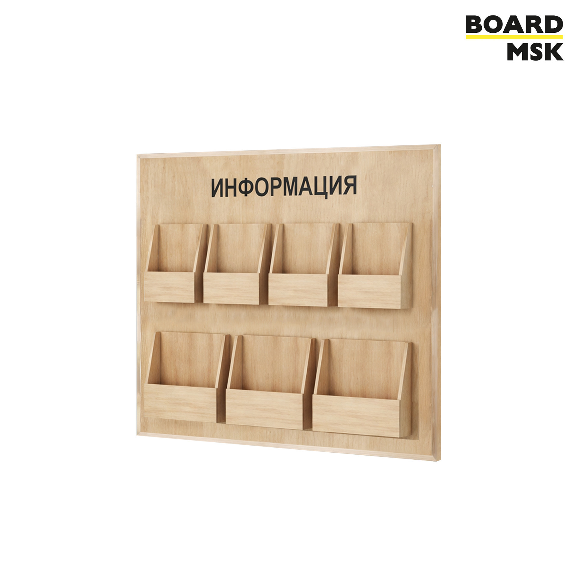 - Информационный стенд настенный Board-msk деревянный на колесиках, 7 объемных карманов