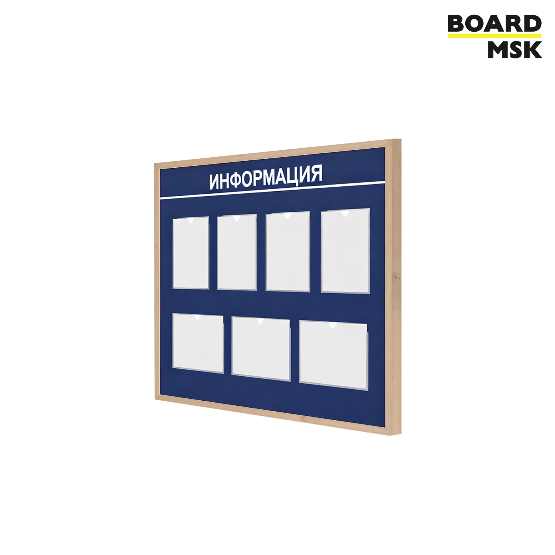 Информационный стенд настенный Board-msk деревянный на колесиках, 7 отделений - А4