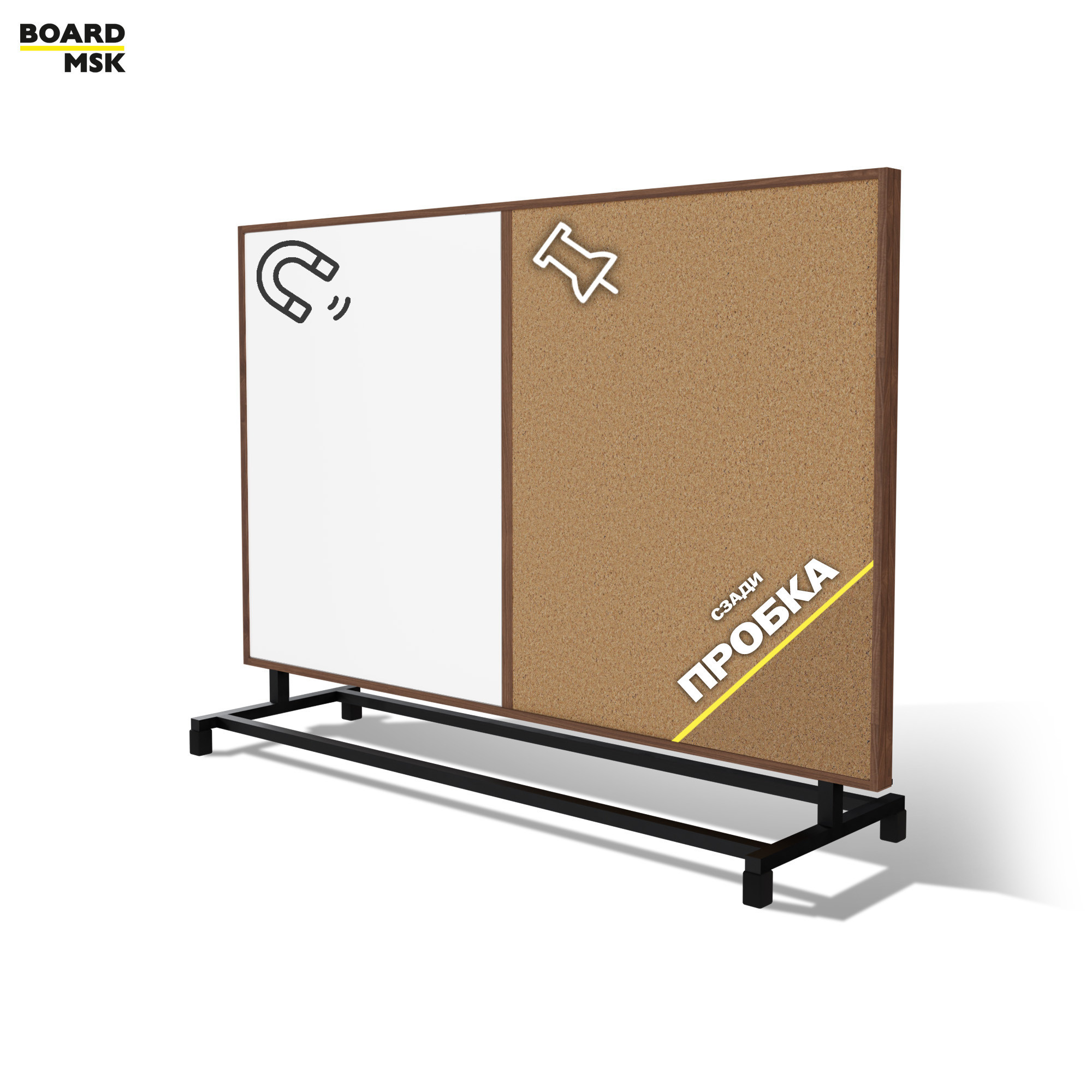 - Перегородка мобильная горизонтальная 50% пробка, 50% магнитно-маркерное покрытие, цвета "Орех" + пробка