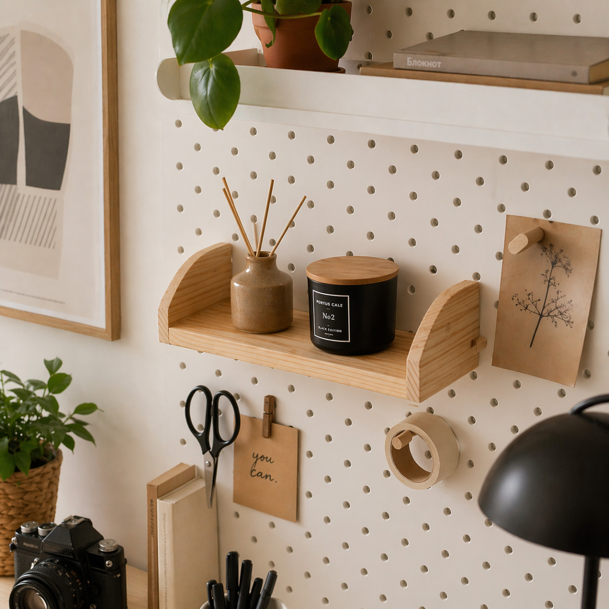 - Полка для пегборда Board-msk деревянная с боковыми бортами