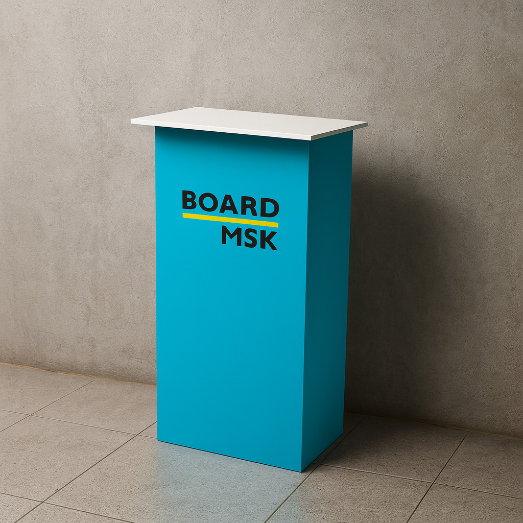 Промостойка из ПВХ — лёгкая, мобильная и износостойкая конструкция для проведения дегустаций, презентаций, консультаций и раздачи POS-материалов в торговых залах, на выставках и событиях. Вспененный ПВХ обеспечивает малый вес и устойчивость к влаге, а полноцветное брендирование гарантирует высокую заметность вашей коммуникации.