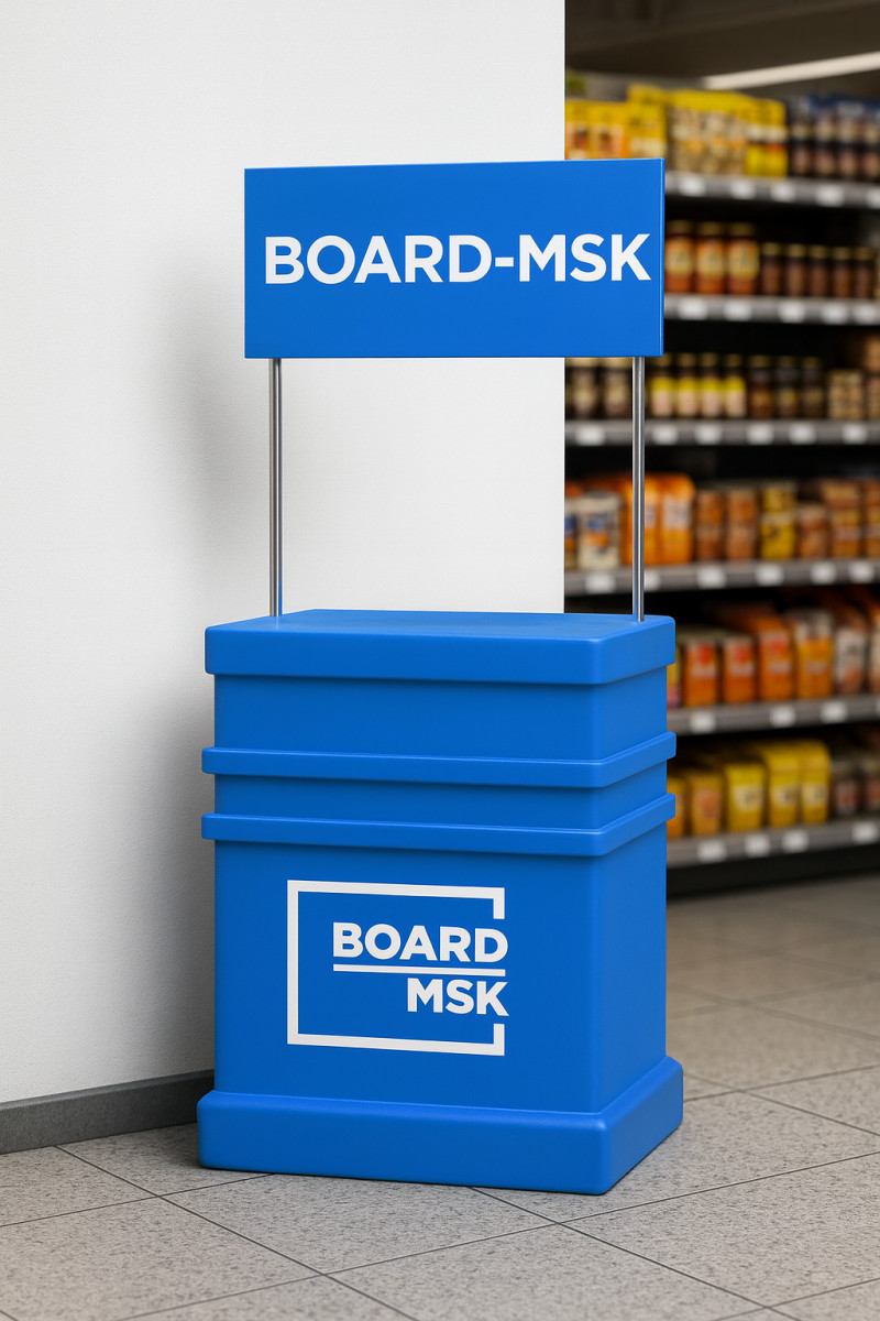 Промостойка из ПВХ — лёгкая, мобильная и износостойкая конструкция для проведения дегустаций, презентаций, консультаций и раздачи POS-материалов в торговых залах, на выставках и событиях. Вспененный ПВХ обеспечивает малый вес и устойчивость к влаге, а полноцветное брендирование гарантирует высокую заметность вашей коммуникации.