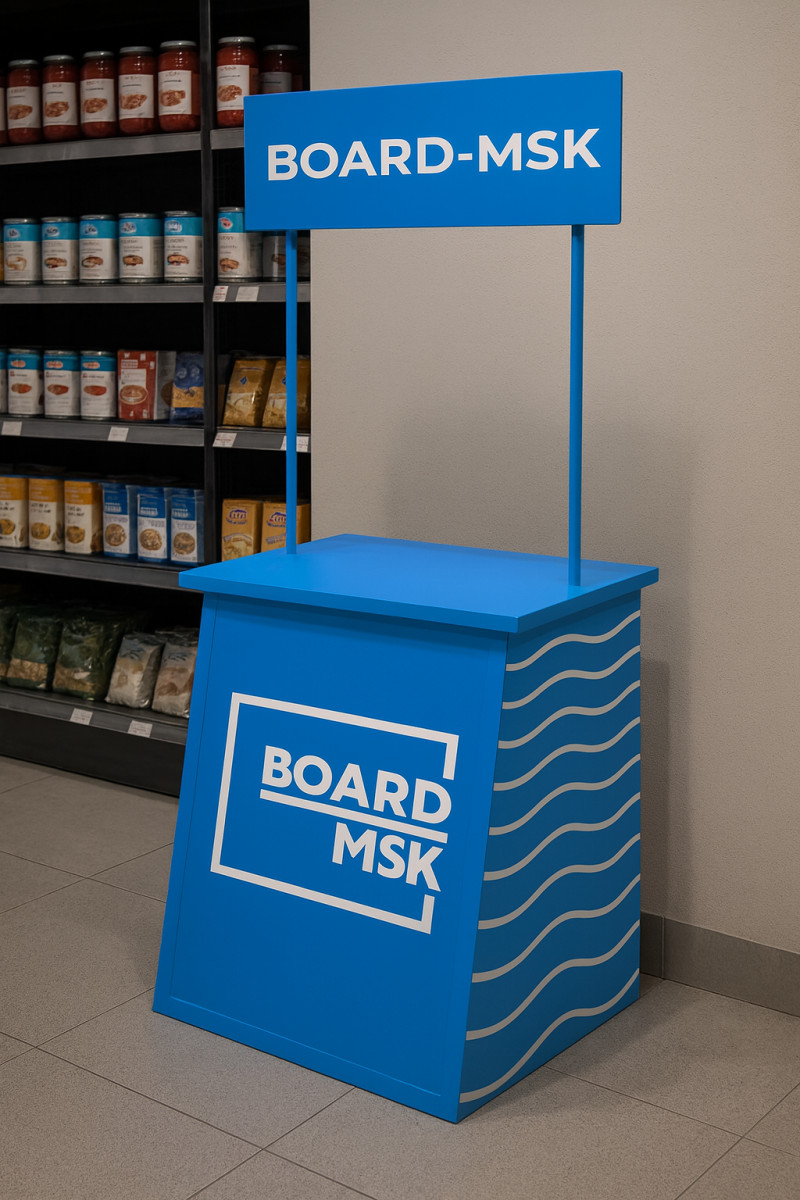 Промостойка из ПВХ — лёгкая, мобильная и износостойкая конструкция для проведения дегустаций, презентаций, консультаций и раздачи POS-материалов в торговых залах, на выставках и событиях. Вспененный ПВХ обеспечивает малый вес и устойчивость к влаге, а полноцветное брендирование гарантирует высокую заметность вашей коммуникации.