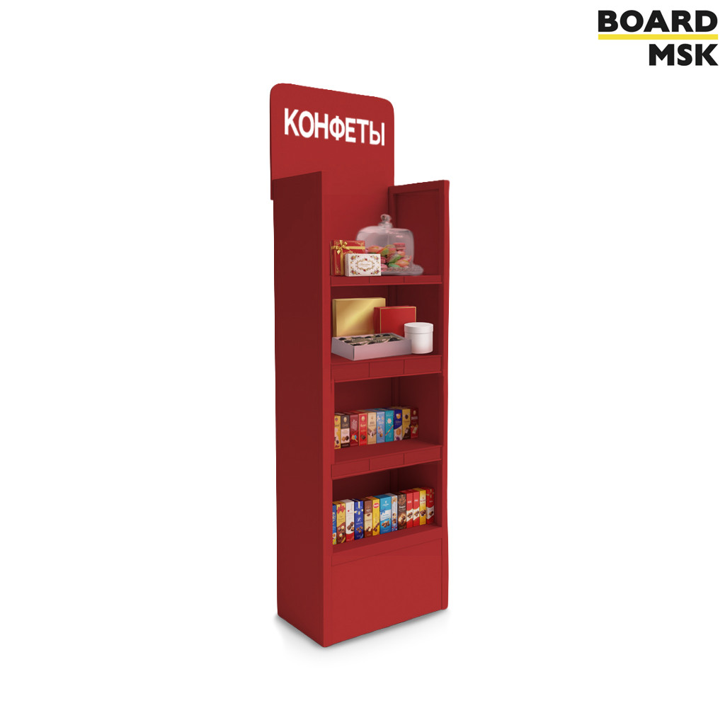 - Промостойка рекламная для товаров из дерева с 4-мя полками