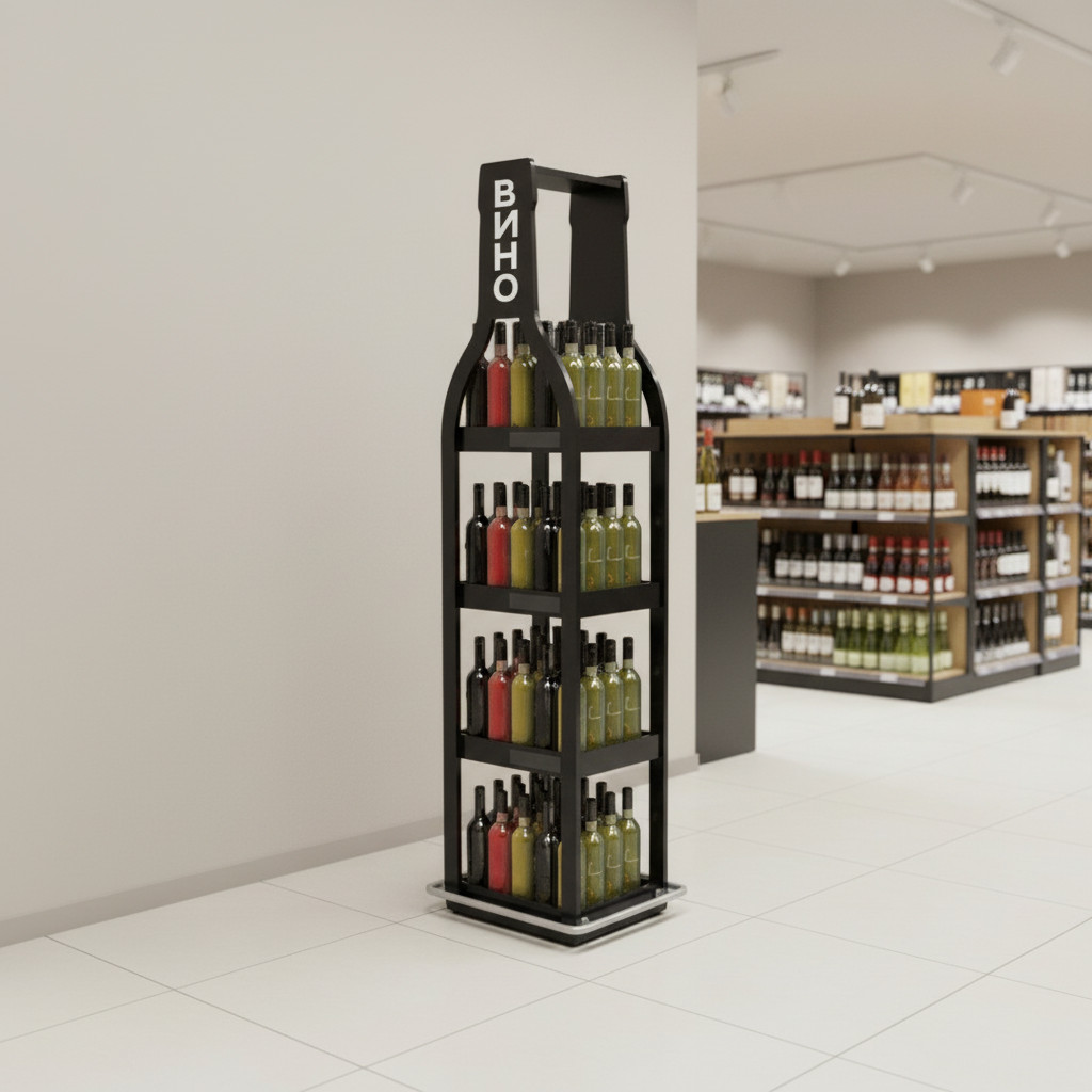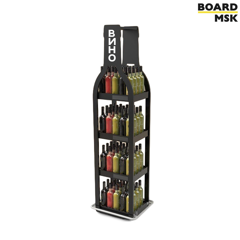 Промостойка рекламная для товаров из дерева с 4-мя полками с отделением под логотип "Вино" №2