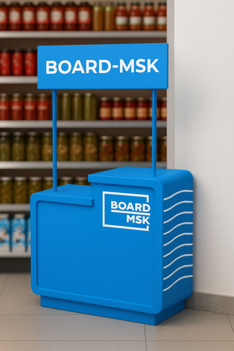 Промостойка из ПВХ — лёгкая, мобильная и износостойкая конструкция для проведения дегустаций, презентаций, консультаций и раздачи POS-материалов в торговых залах, на выставках и событиях. Вспененный ПВХ обеспечивает малый вес и устойчивость к влаге, а полноцветное брендирование гарантирует высокую заметность вашей коммуникации.