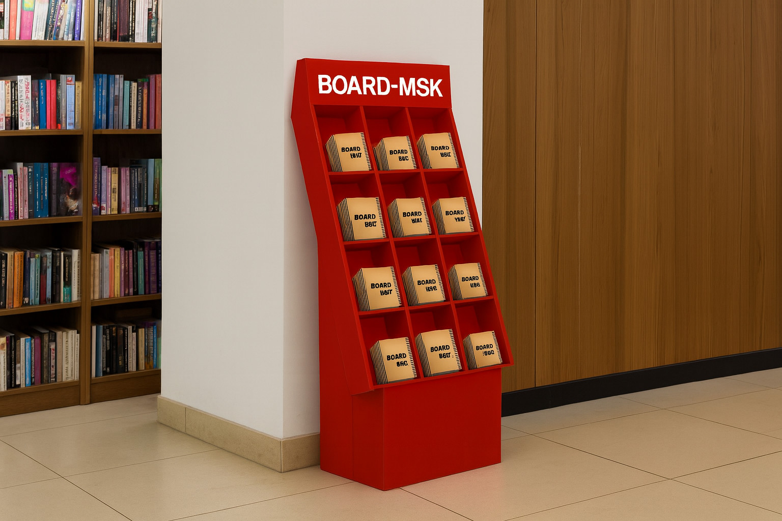 - Промостойка выставочная с полками под книги и журналы с отделением под логотип