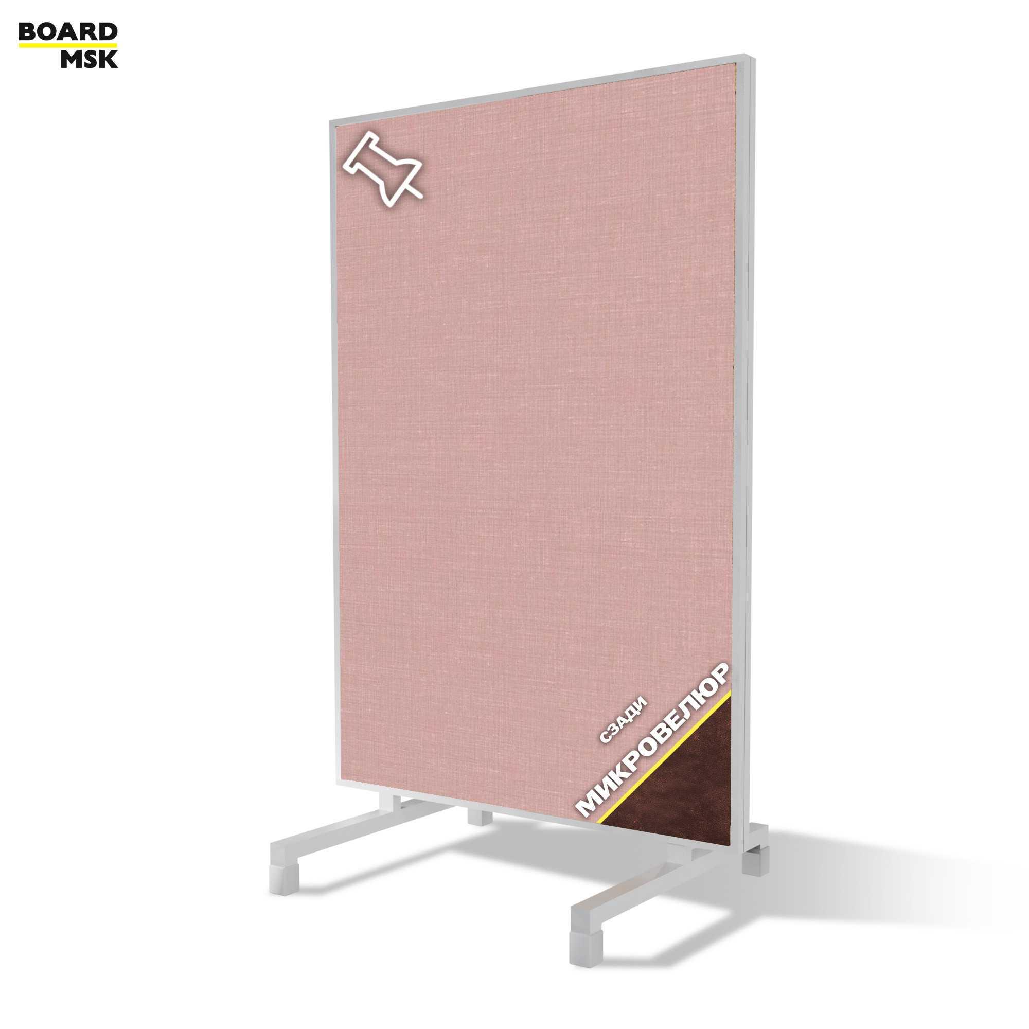 Вертикальная перегородка мобильная из розовой ткани металлическая цвета "Белый" + микровелюр