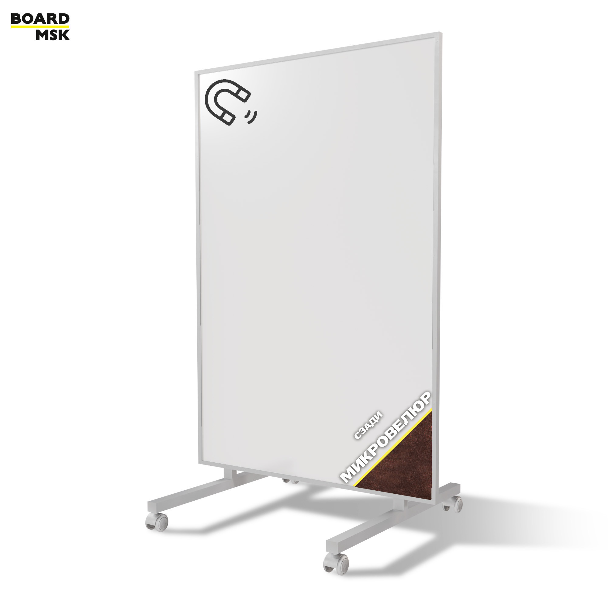 - Вертикальная перегородка мобильная магнитно-маркерная, металлическая, цвета "Белый" + микровелюр, на колесиках