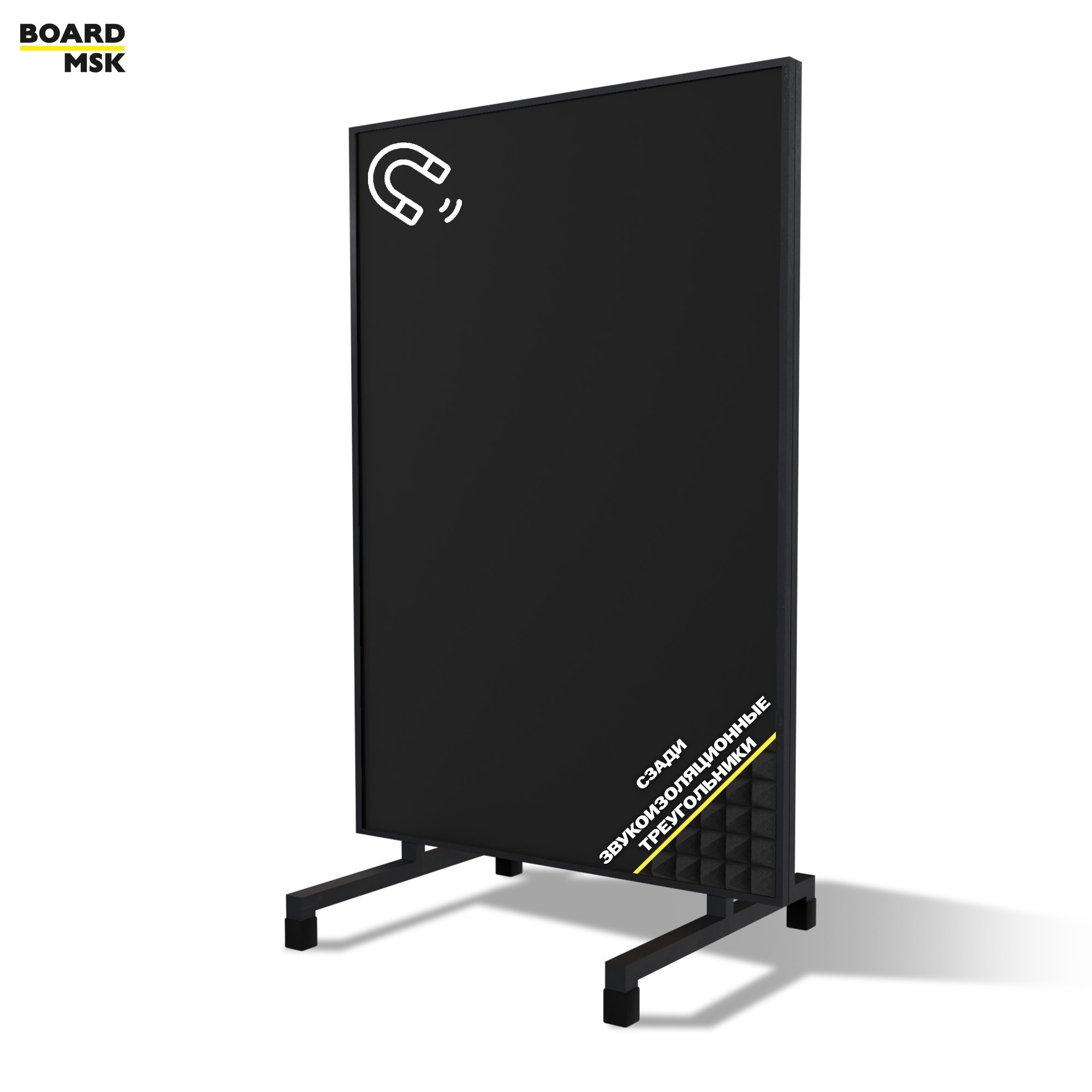 Вертикальная перегородка мобильная магнитно-меловая, металлическая, цвета "Черный" + звукоизоляционные треугольники №2