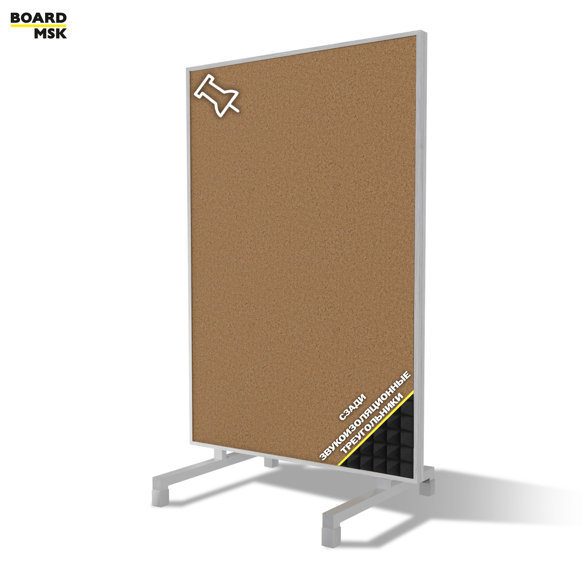 - Вертикальная перегородка мобильная пробковая цвета "Белый" + звукоизоляционные треугольники